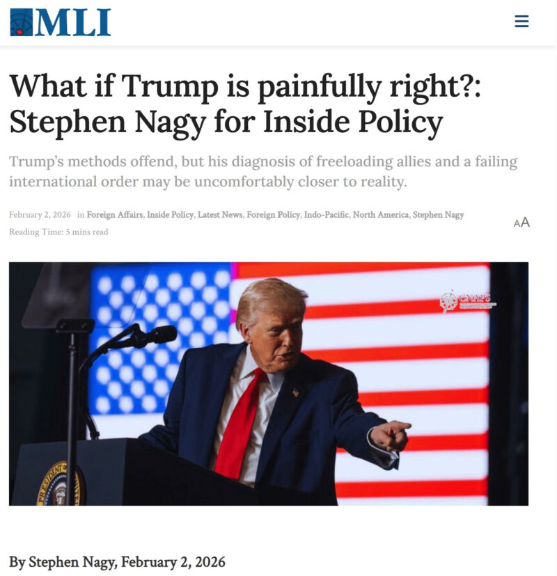 "Nobody wants Trump to be right. The possibility offends. But wanting is not analysis, and offence is not refutation. The painful possibility that Canadian policymakers must sit with is that Trump’s crude assessment of allies, adversaries, and the failing international order may