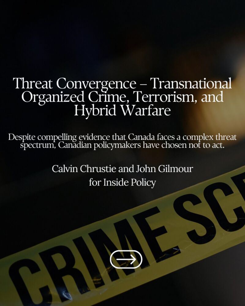 In the latest for Inside Policy, @CalvinChrustie and Dr. John Gilmour warn that Canada is failing to confront the growing convergence of transnational organized crime, terrorism, and state-backed hybrid warfare.