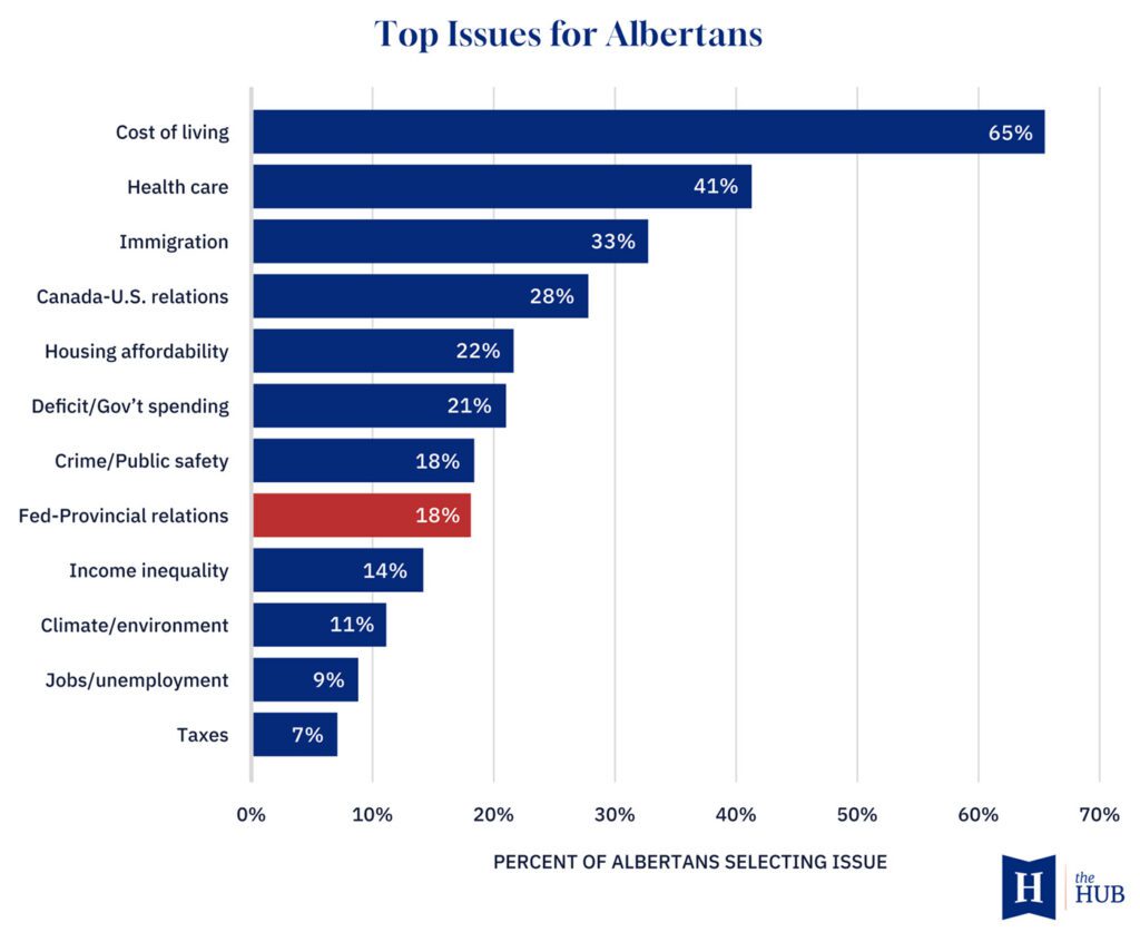 And despite all the vocal hostility to the federal government among those setting up booths along the province’s highways and byways to collect enough signatures to force a referendum, independence is not a top issue for most Albertans. In fact, federal-provincial relations rank seventh on the list of top concerns after the cost of living and the health-care system.