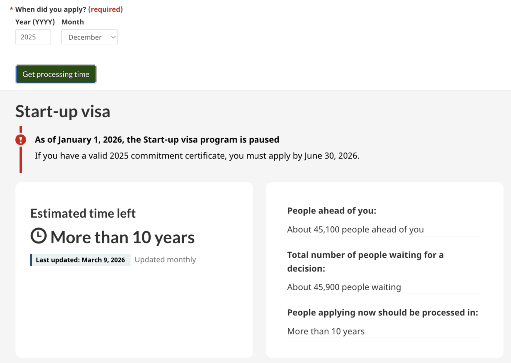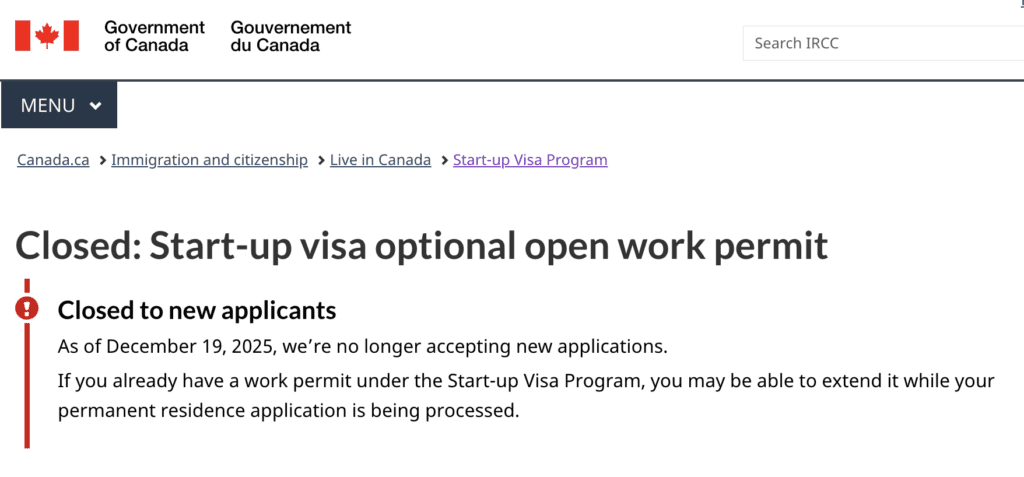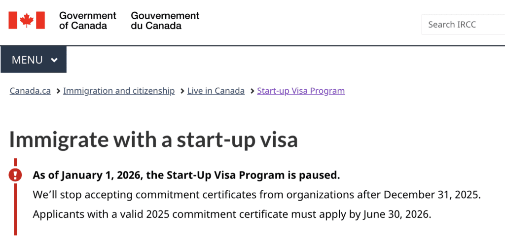 Then, just a few weeks later, the government took its most decisive step. As of January 2026, it paused the Start-Up Visa program entirely (see Figure 11), with no new commitment certificates accepted after December 31, 2025.