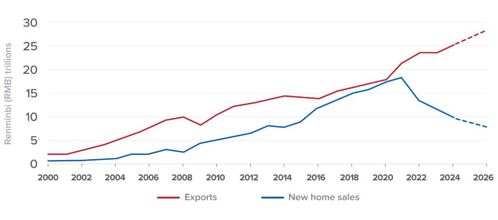 Figure 3: “The big divide”: China’s export dependency amid weakening domestic demand