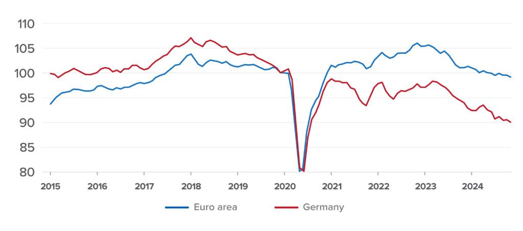 Source: CEPR 2025. Note: all data are seasonally adjusted and in 3-term moving averages.  Last observation: November 2024.