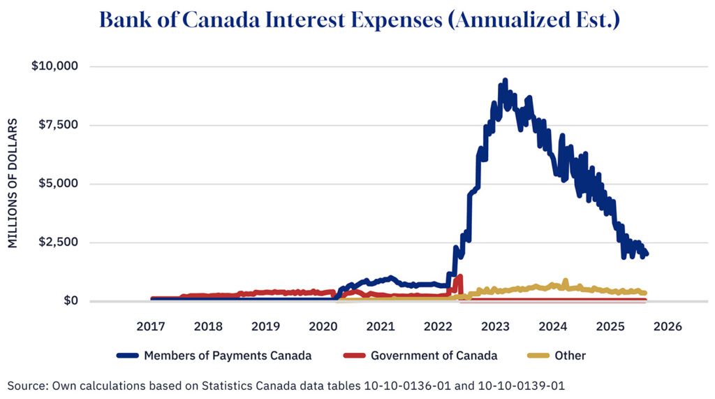 Since then, the Bank has been unwinding its pandemic-era bond holdings. It has allowed maturing bonds to roll off its balance sheet, cutting its federal government bond holdings by more than half. Commercial bank deposits have also dropped—from nearly $400 billion in early 2021 to about $80 billion today. Interest rates have declined as well, reducing the Bank’s expenses and bringing its income and expenditures back into closer alignment.