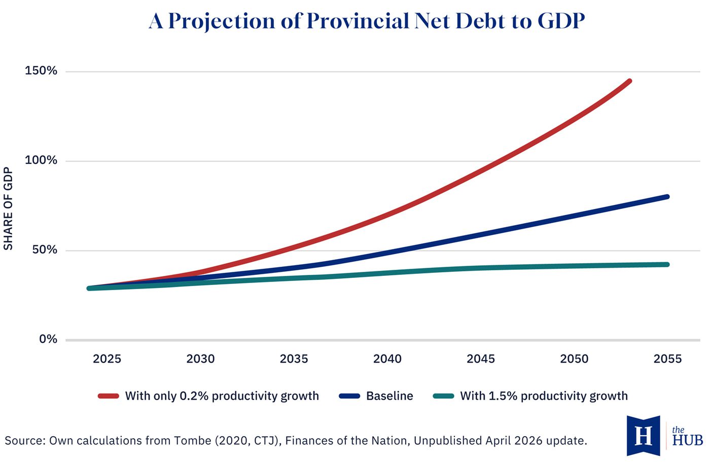 By contrast, if productivity growth accelerates to a little above where it used to be not that long ago, then the fiscal problems of both the provincial and federal governments are, for the most part, solved.